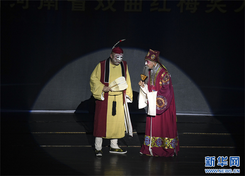 9月19日,中国戏剧梅花奖获得者虎美玲、杨红霞一起表演豫剧巜大祭桩》选段。