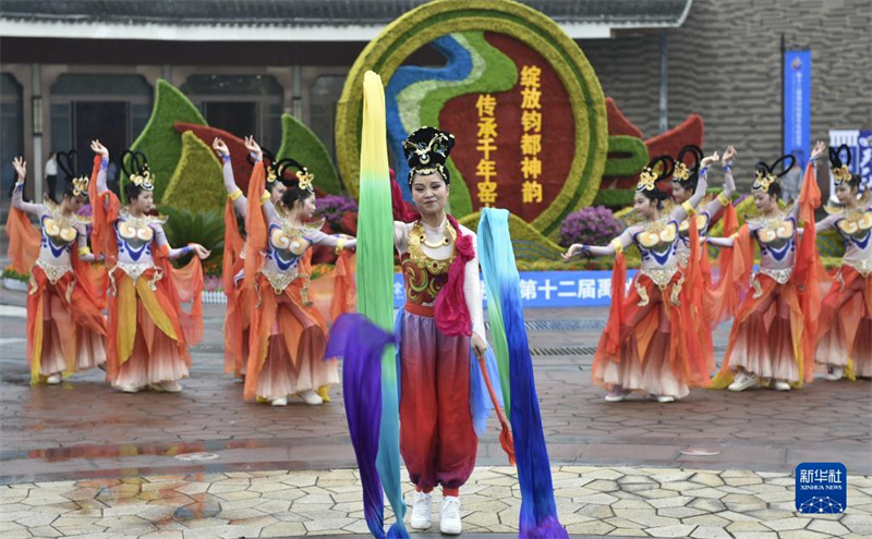 9月25日,演员在第十二届禹州钧瓷文化旅游节开幕式前进行舞蹈表演。当日,第十二届禹州钧瓷文化旅游节开幕式在河南省禹州市神垕钧瓷文化主题公园举行。此次文化旅游节将举行中国钧瓷暨美术陶瓷博览会、陶瓷雕塑大赛、非遗大集、钧瓷研学游、项目推介暨签约仪式等多项活动。河南禹州是钧瓷的原产地,素有“钧都”美誉。目前,全市共有钧瓷企业200余家,年产销钧瓷220多万件(套),年产值20多亿元。新华社记者 鲁鹏 摄