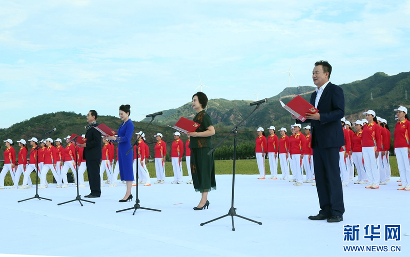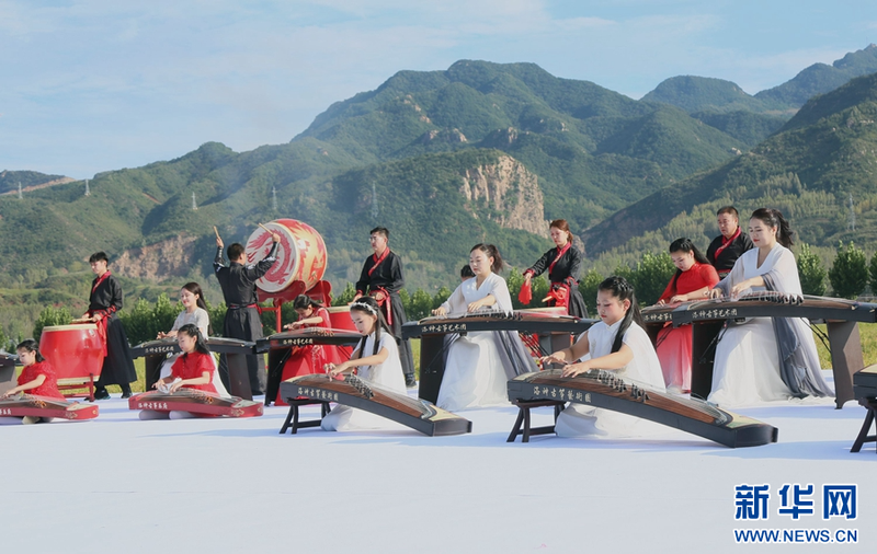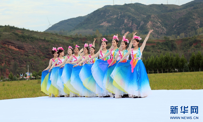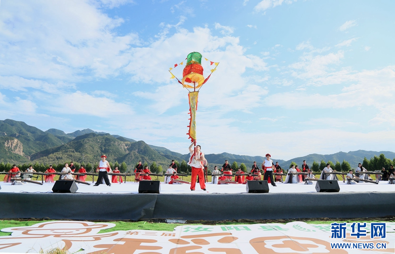 9月29日,演员在河南省洛阳市汝阳县第三届“独稻三屯”稻田音乐节上表演节目。