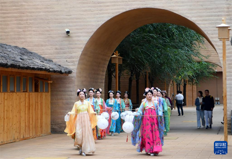 10月6日,在“只有河南·戏剧幻城”景区,演员在剧目中表演。中秋、国庆长假期间,位于河南省郑州市中牟县的“只有河南·戏剧幻城”景区吸引来自全国各地的游客参观游玩。新华社记者 郝源 摄