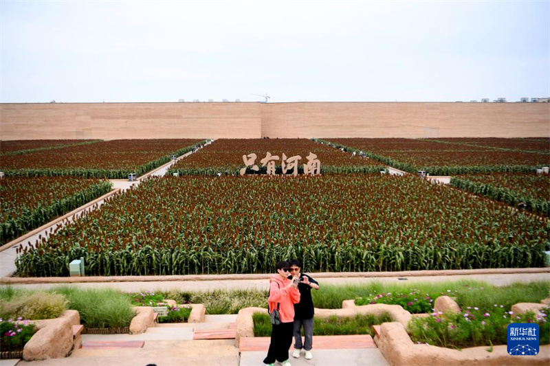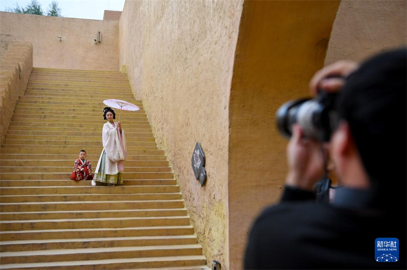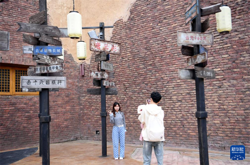 10月6日,游客在“只有河南·戏剧幻城”景区内游玩拍照。中秋、国庆长假期间,位于河南省郑州市中牟县的“只有河南·戏剧幻城”景区吸引来自全国各地的游客参观游玩。新华社记者 郝源 摄