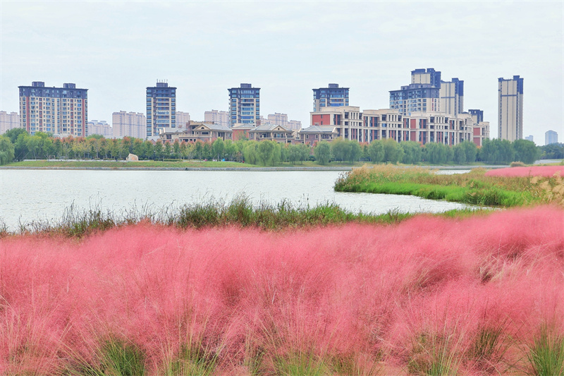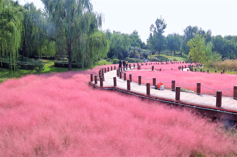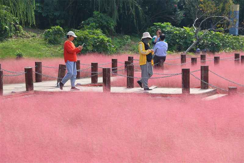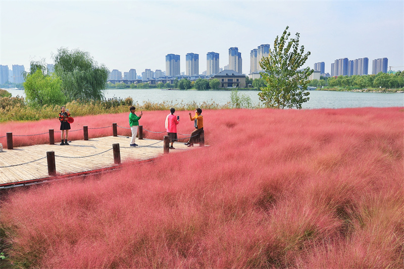 近日,粉黛乱子草进入花期,黑岗口调蓄水库旁的红色“花海”吸引许多市民前来游玩观赏。开封+记者李浩 10月8日摄