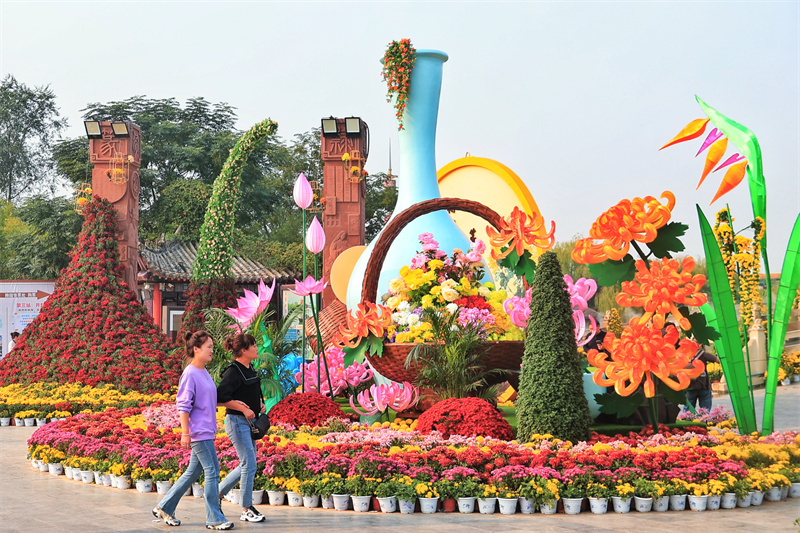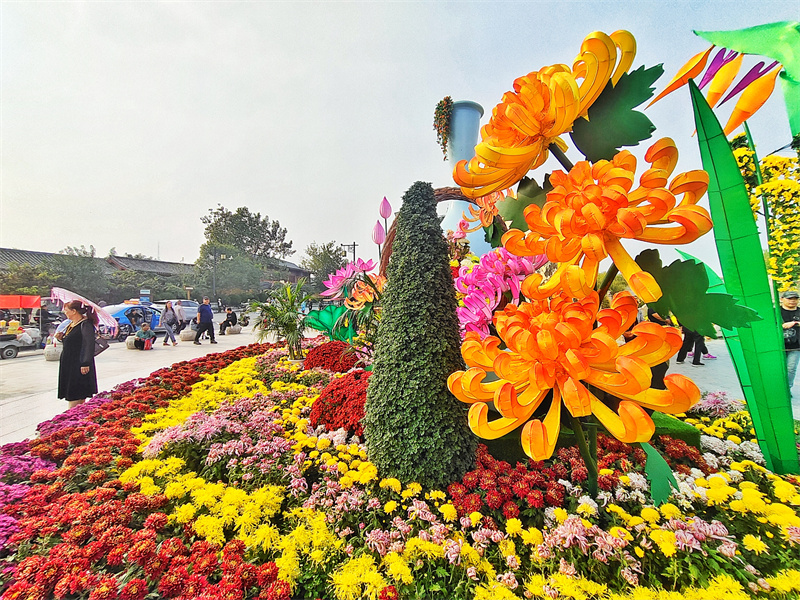 中国开封第41届菊花文化节将于10月18日拉开帷幕。近日,街头、景区等布展的菊花景观已将古城装扮一新,营造出满城菊香的喜庆氛围。开封+记者 李浩 10月9日摄