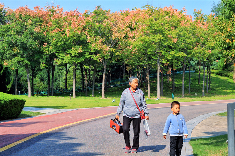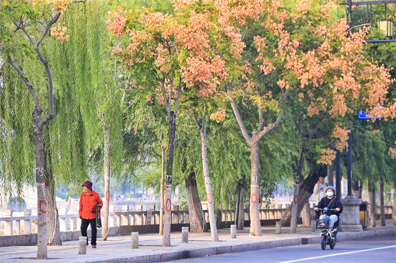 进入秋季,开封市的栾树进入观赏期,红色的栾树果实挂满枝头,令人赏心悦目。开封+记者李浩10月10日摄