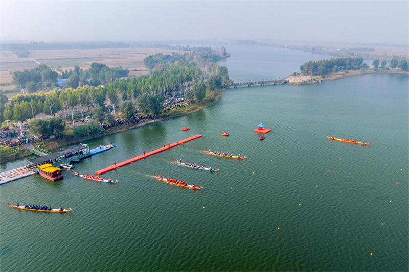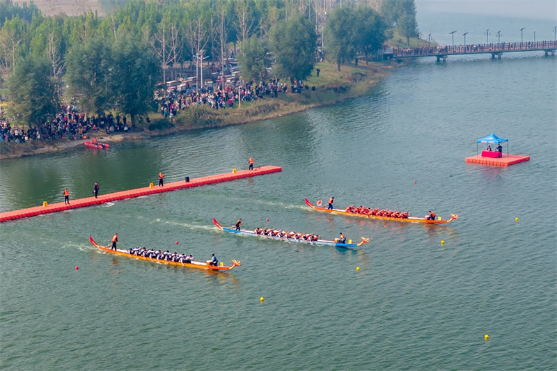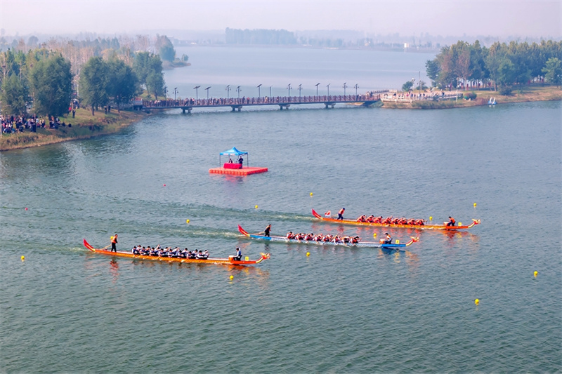 10月14日,河南省安阳市滑县千翠湖,河南省第十一届中华轩辕龙舟大赛总决赛暨滑县首届全民龙舟大赛现场。