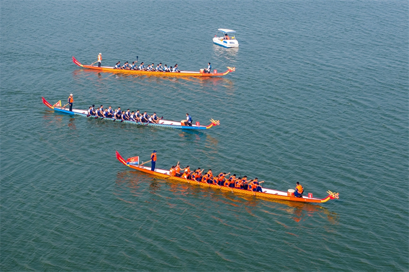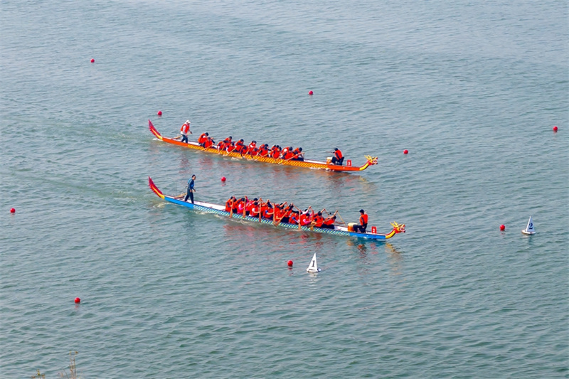 10月14日,河南省安阳市滑县千翠湖,河南省第十一届中华轩辕龙舟大赛总决赛暨滑县首届全民龙舟大赛现场。10月14日,河南省第十一届中华轩辕龙舟大赛总决赛暨滑县首届全民龙舟大赛拉开帷幕,来自全省各地市的20余支队伍参赛。在如画般美丽的滑县千翠湖上,队员们奋勇争先,向观众们展示中国龙舟文化的魅力。新华网发(王子瑞 摄)