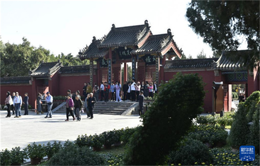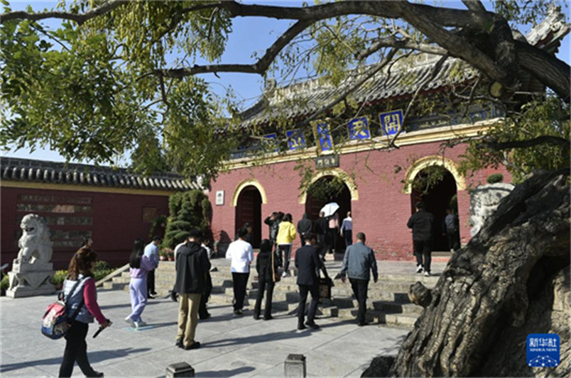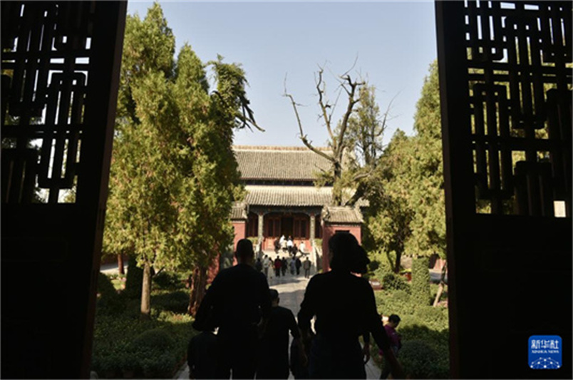 10月20日,游人在太昊陵景区内参观游览。秋日里,位于河南省周口市淮阳区的太昊陵景区古柏森森,吸引众多游人前来参观,感受深厚的人文底蕴和历史文化。新华社记者 鲁鹏 摄