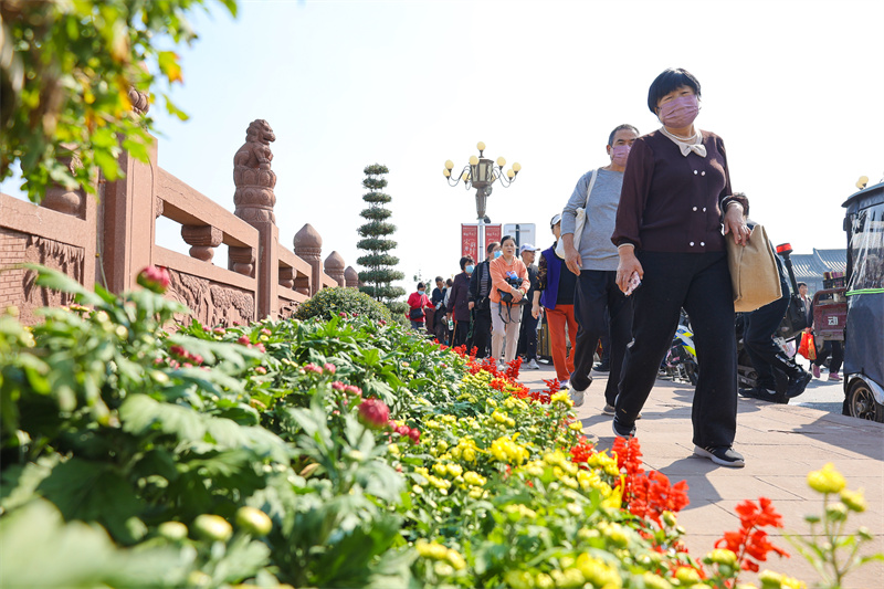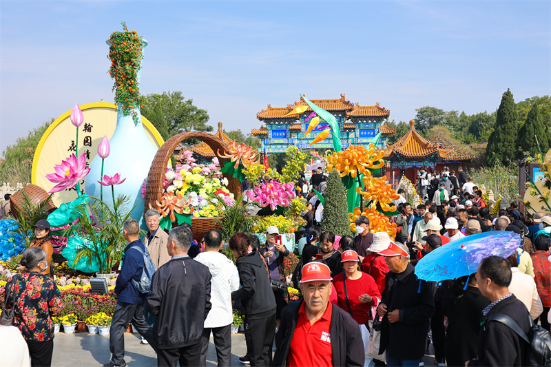 10月23日重阳节,宋都皇城旅游度假区内人山人海,游客游城赏菊,十分热闹。开封+记者 石斐 摄