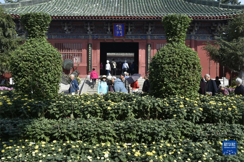 游人在开封市龙亭公园游园赏花(10月23日摄)。近日,中国开封第41届菊花文化节正在河南省开封市举行。本届菊花文化节为期一个月,以“宋韵开封·菊香中国”为主题,在市内多个景区共布展菊花320万盆,为游客带来一场既有时代气息又具开封特色的菊花文化盛宴。新华社记者 鲁鹏 摄