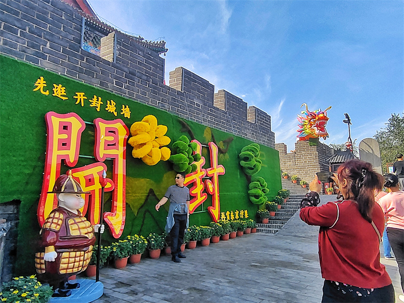 菊花文化节期间,众多游客登上开封城墙,感受古城厚重的历史文化。开封+记者李浩10月26日摄