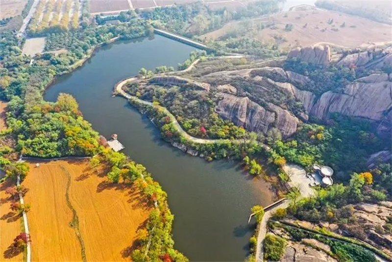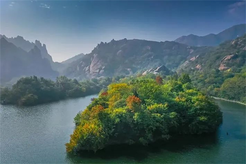 近日,遂平县嵖岈山天磨湖,水天一色,远山葱茏,湖面清澈静美,植被色彩缤纷,层林尽染。斑斓的色彩相互交织,勾勒出一幅充满诗情画意的秋日风景画。(摄影:赵建明)