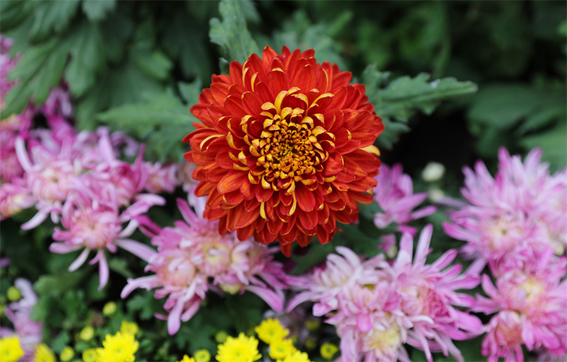11月3日,虽然天气降温,古城开封仍然满城芬芳。街头、景区内数万株色彩斑斓的菊花在寒风中傲寒绽放,吸引市民和游客前来观光。开封+记者 姜菡 摄