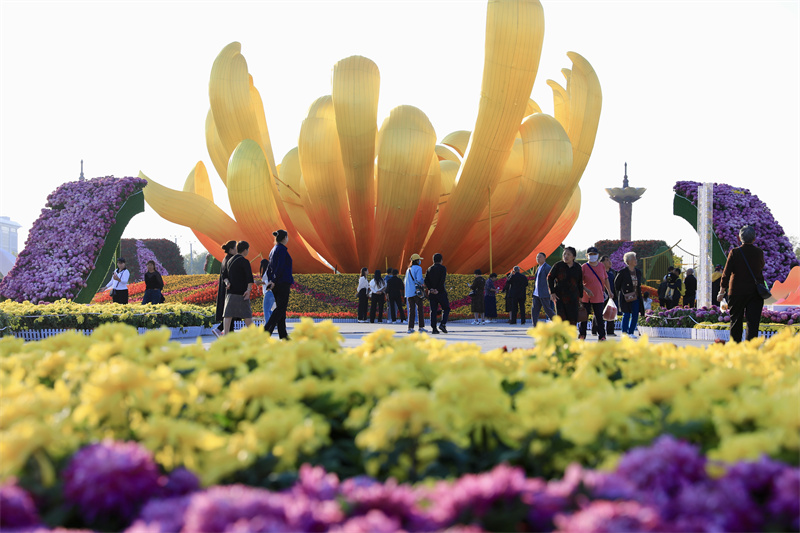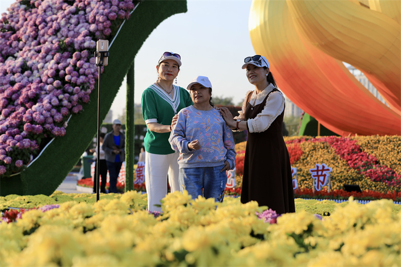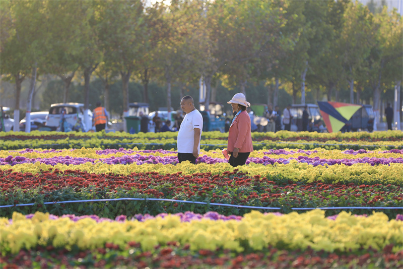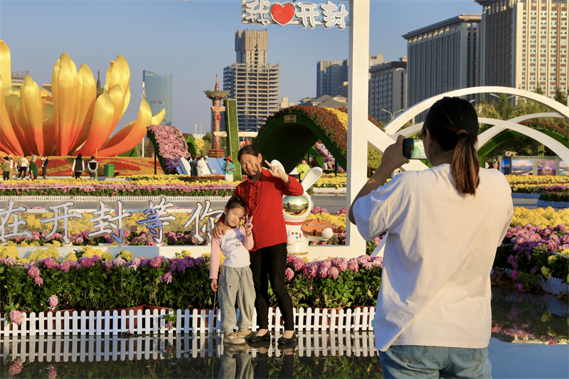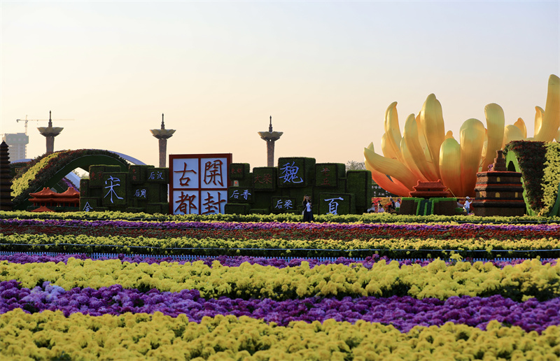 11月1日,在秋日的阳光下,古城开封婀娜多姿的菊花无比娇艳,游客畅游在菊海间,共赏金秋美景。开封+记者 姜菡 摄