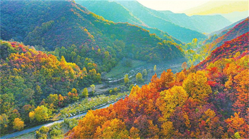 深秋时节,三门峡小秦岭国家级自然保护区层林尽染,色彩斑斓,犹如一幅美丽画卷(11月4日摄)。段景波 摄