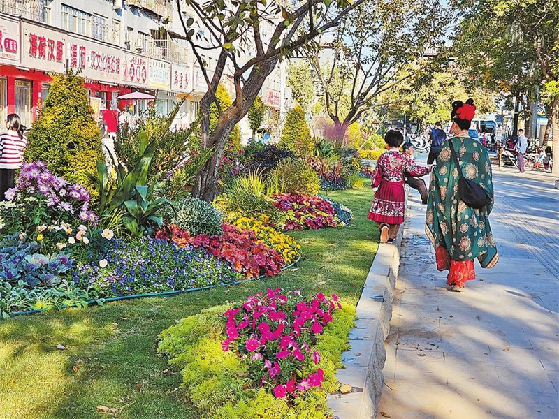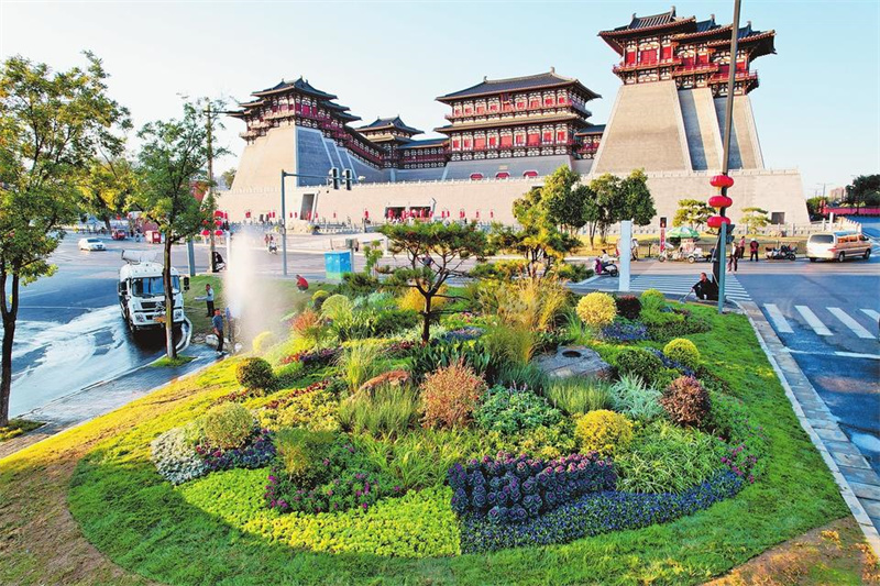 前不久,洛阳市印发《洛阳市中心城区“北国花城”建设三年行动方案》,提出力争用3年时间,将洛阳建设成为北方地区独具特色、富有魅力的花园之城、生态之城、花卉产业之城。为此,全市开展了花路、花墙、花境、花廊、花海、花市六大专项行动。截至11月5日,全部207处建设任务,已完成166处。图② 九都东路洛邑古城段一路繁花。