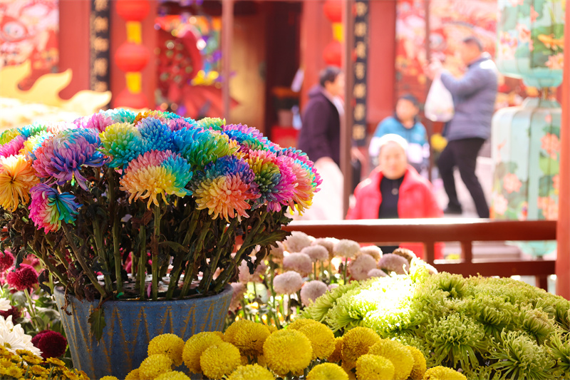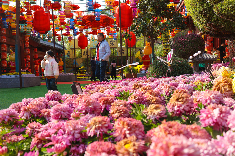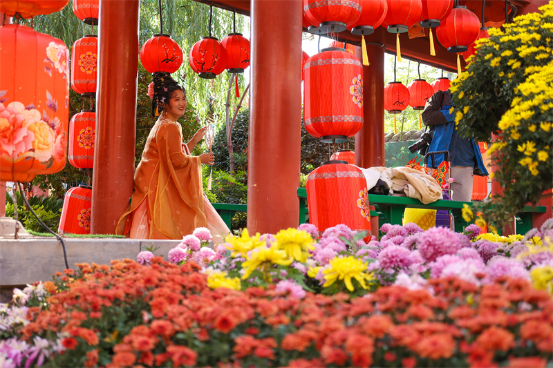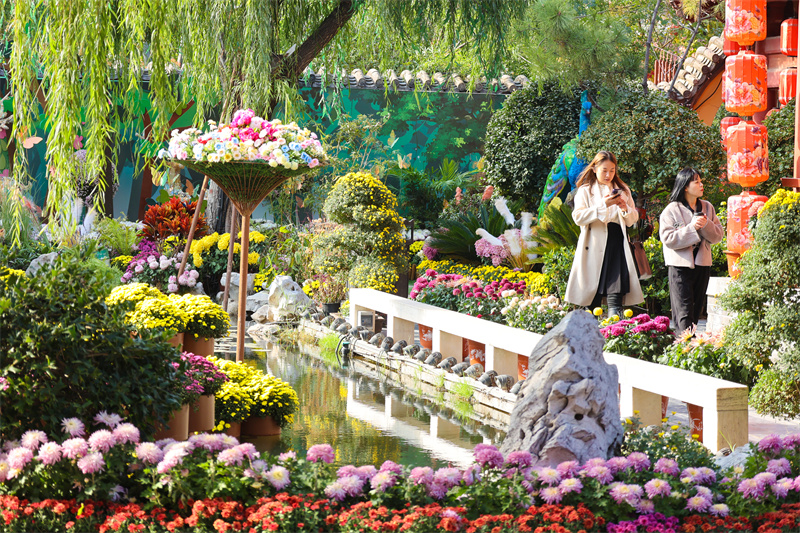 11月13日,开封市天气晴好,许多游客来到景区游玩、赏菊,乐享冬日好时光。 开封+记者 石斐 摄