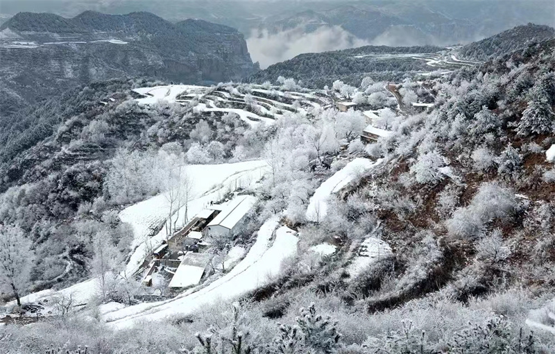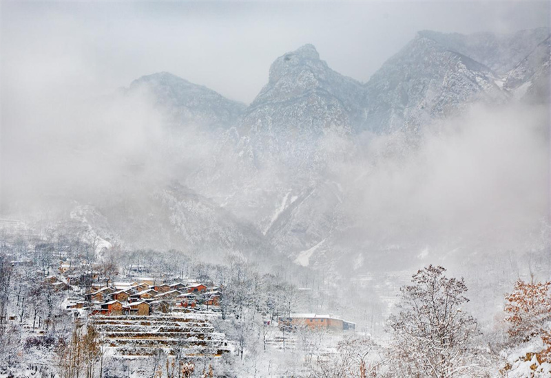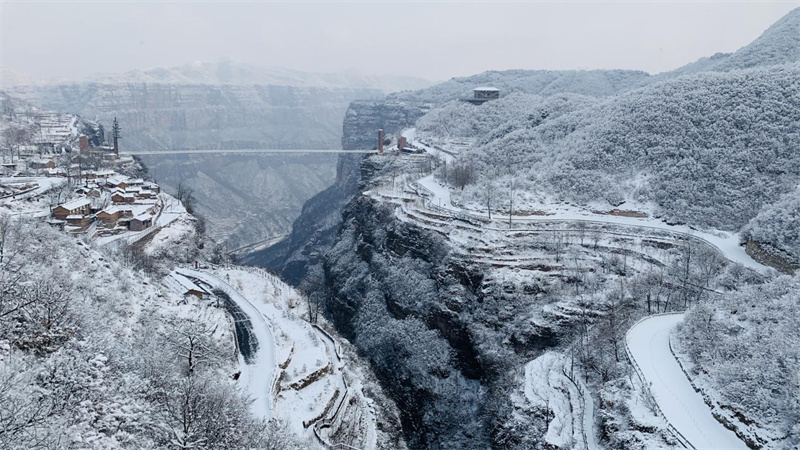 11月10日,河南安阳市林州太行大峡谷迎来了入冬后第一场雪,雪花飘落,漫山遍野,流花飞琼,瑰丽无比,分外迷人,静谧了时光,温柔了心情。一夜银装素裹,把山峦草木都笼罩在一片白色的梦幻之中。身披银氅的太行山,别有风情,静静屹立于天地之间,以冬风为笔,以白雪为色,演绎着一幅绝美的冬日画卷。冬游太行,拥抱太行,收获别样的美,收获别样的情。(何志文 武龙飞)