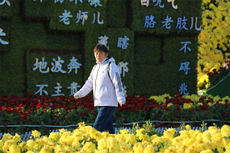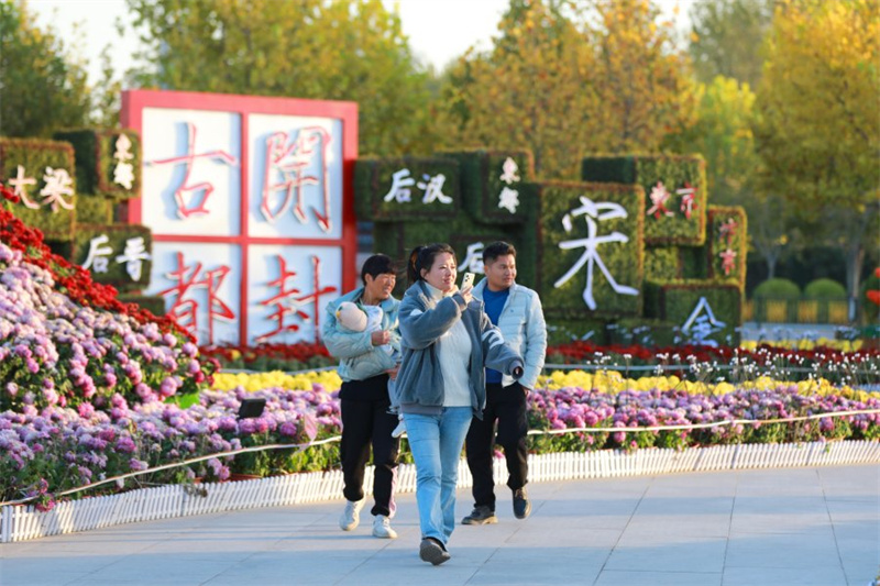 初冬时节,天气渐冷。开封市民广场上,朵朵菊花傲立枝头、迎风绽放,吸引市民、游客驻足观赏。全媒体记者 姜菡 11月16日摄