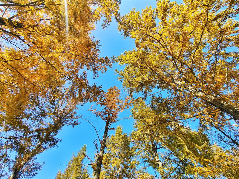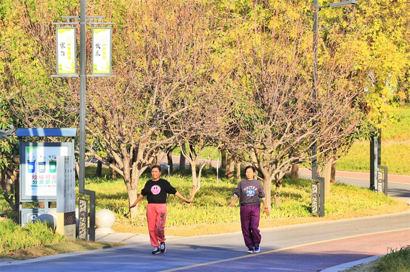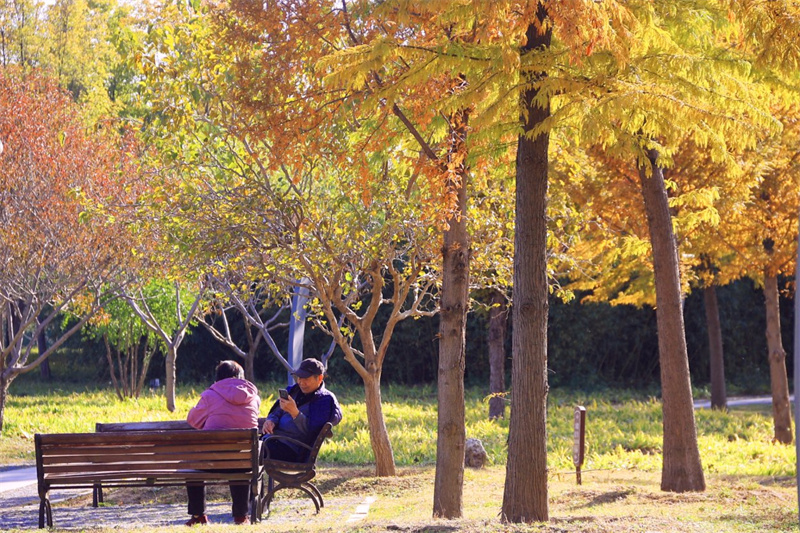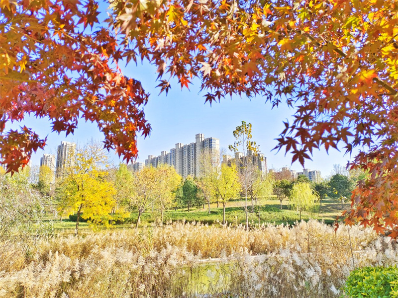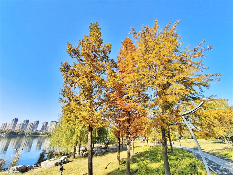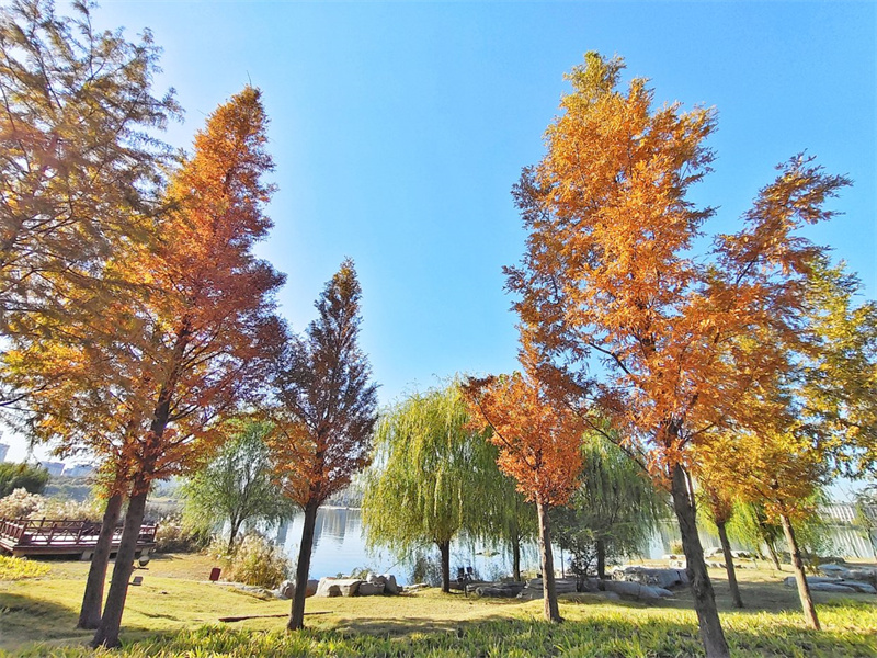 11月17日,暖阳高照,黑岗口调蓄水库附近色彩斑斓、风景如画。开封+记者 李浩 摄