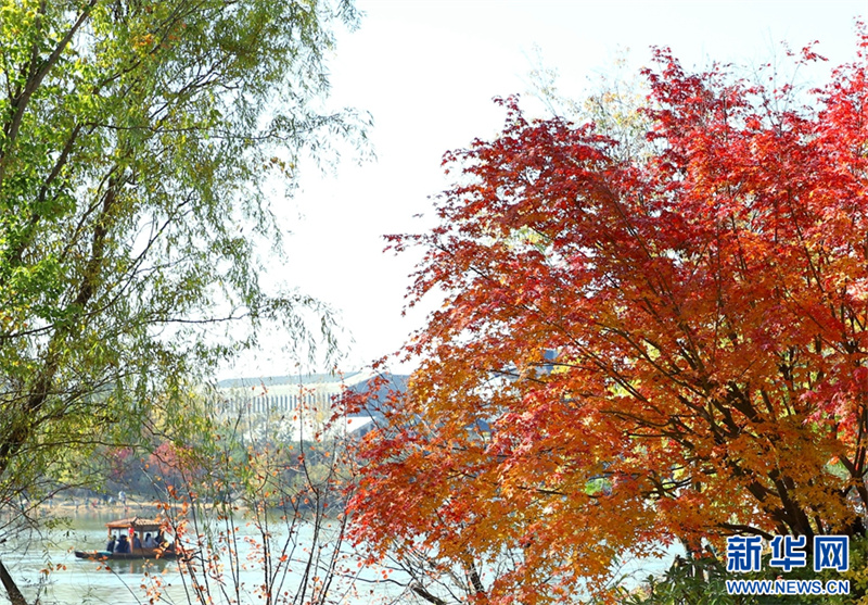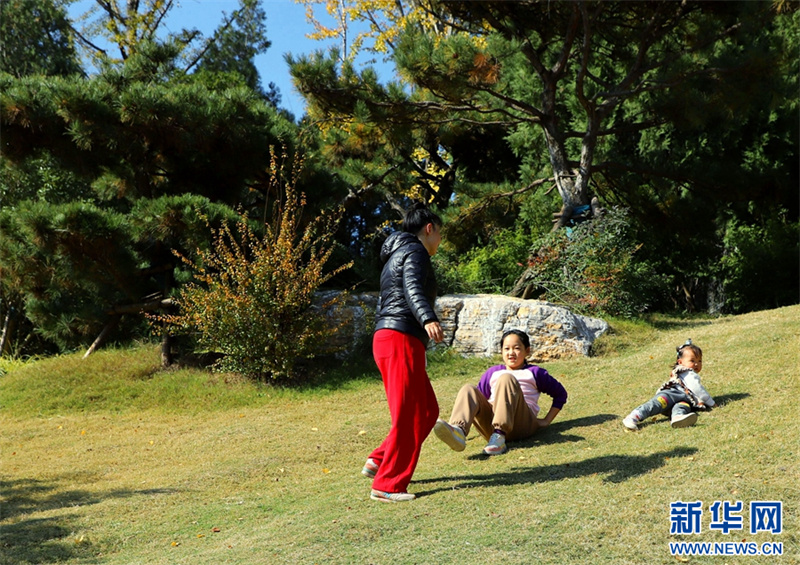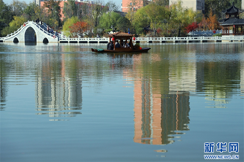 11月19日,在河南省南阳卧龙岗文化园,市民在赏景游玩。连日来,河南省南阳市天气晴好,阳光明媚,许多市民走出家门,享受美好的初冬时光。新华网发(高嵩 摄)