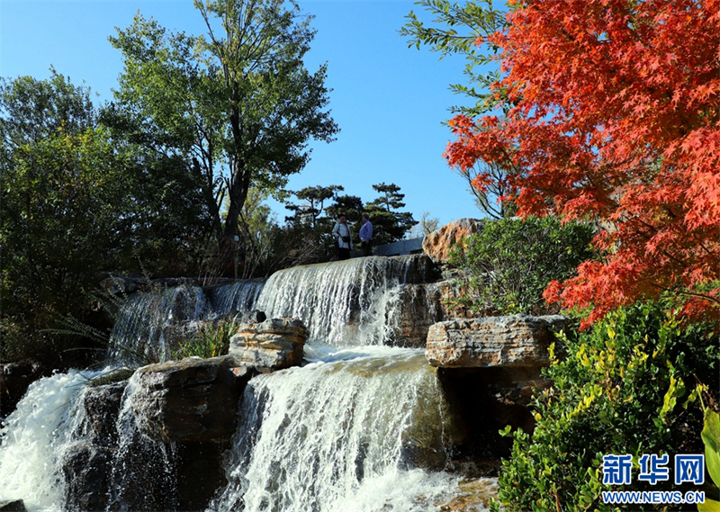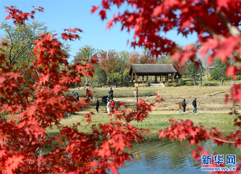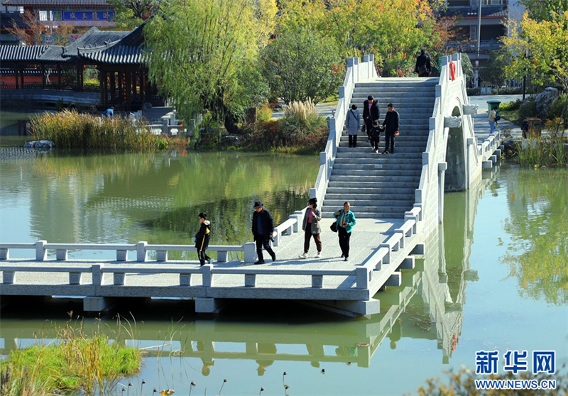 11月19日,在河南省南阳卧龙岗文化园,市民在赏景游玩。