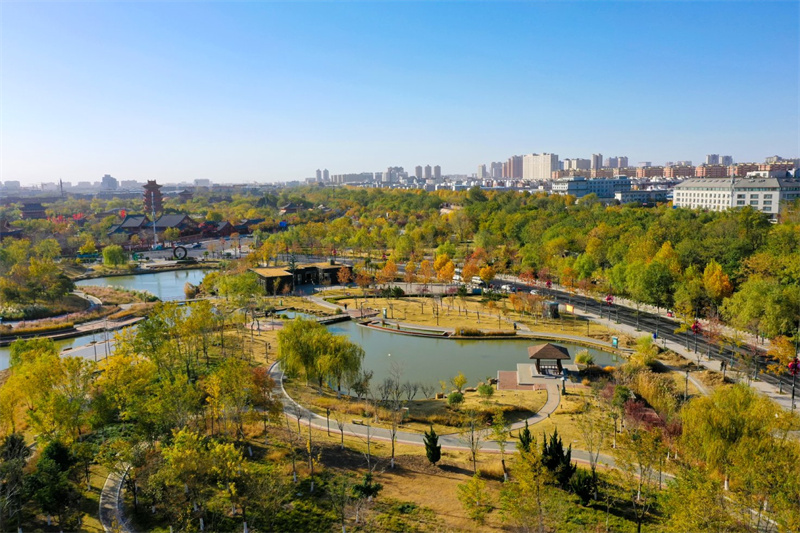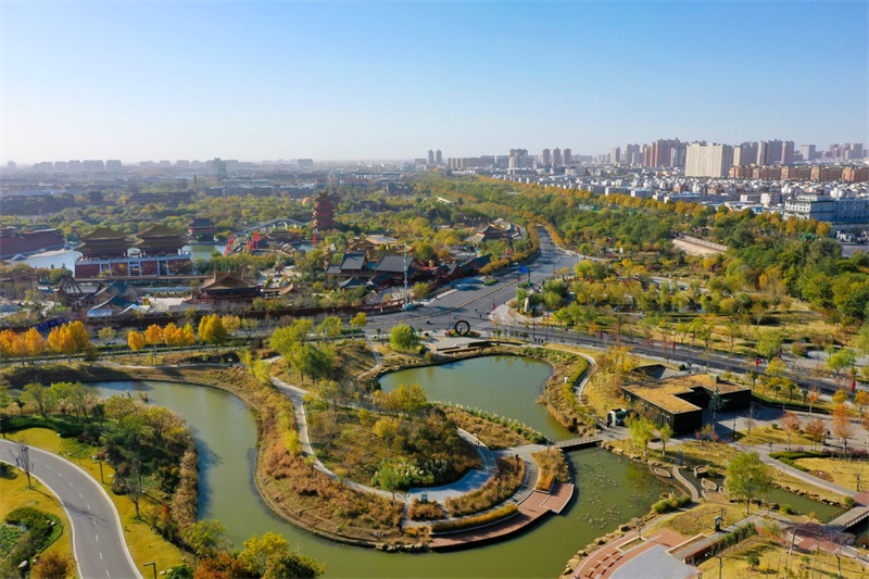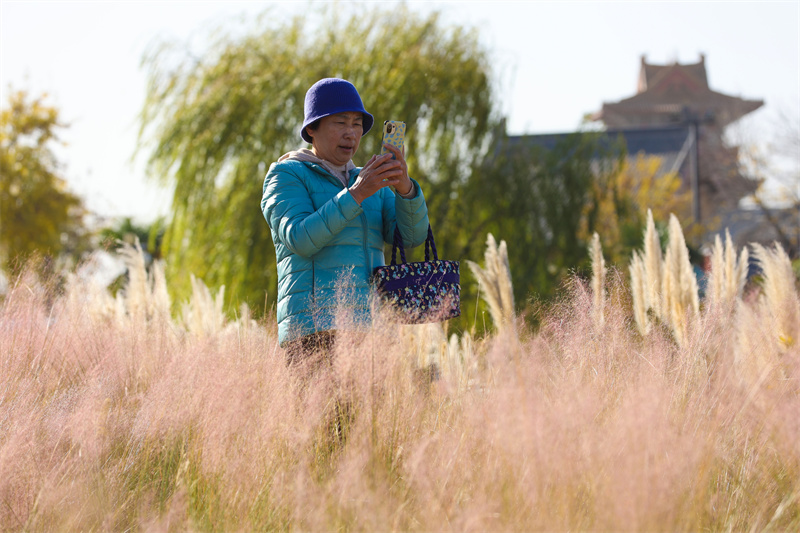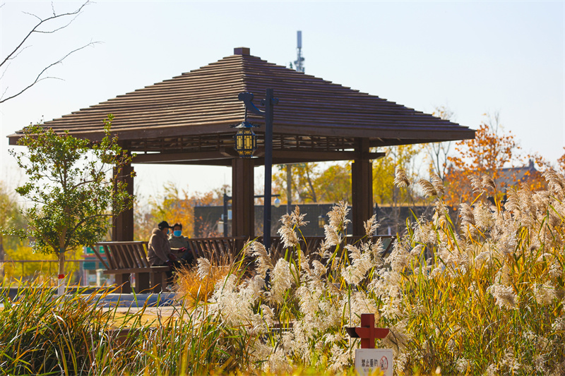 11月23日,西北湖湿地公园色彩斑斓、景色如画,吸引不少市民前来游玩、打卡。开封+记者 石斐 摄