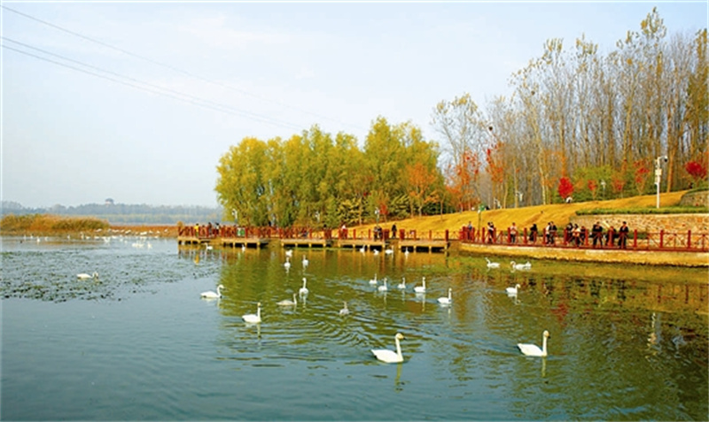 11月21日,白天鹅在黄河湿地苍龙湖嬉戏、觅食,吸引众多游客前来观赏。 近年来,三门峡市不断加大黄河流域生态保护力度,湿地环境越来越好,为上万只白天鹅在此越冬提供了良好栖息地。 三门峡日报记者 王建栋 摄