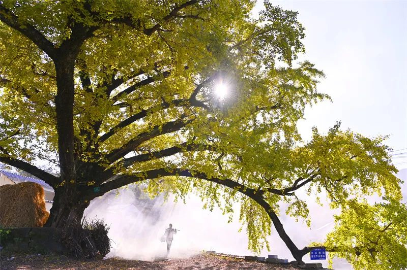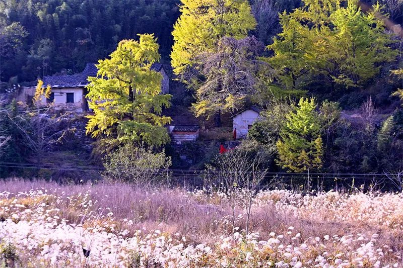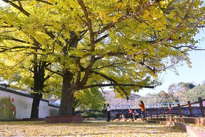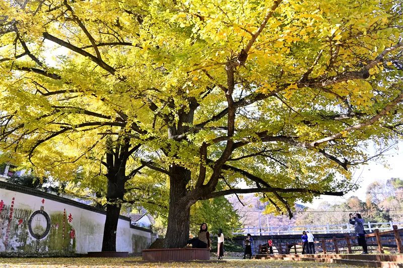 丹枫流火,银杏如暮。初冬时节,新县卡房乡的古银杏树又迎来了一年中最灿烂、最惊艳的时刻。晨起时,暖阳如初,朝晖熠熠,光的瀑布便从那叶间倾泻而下。微风过处,片片黄叶在空中婀娜起舞,不到片刻,所到之处尽披“金甲”。这黄叶,美了小桥流水,美了村庄屋舍,更美了大别山的初冬。不少游客慕名而来打卡拍照,沉醉在这被金色渲染的初冬美景中。(焦汉平/文图)