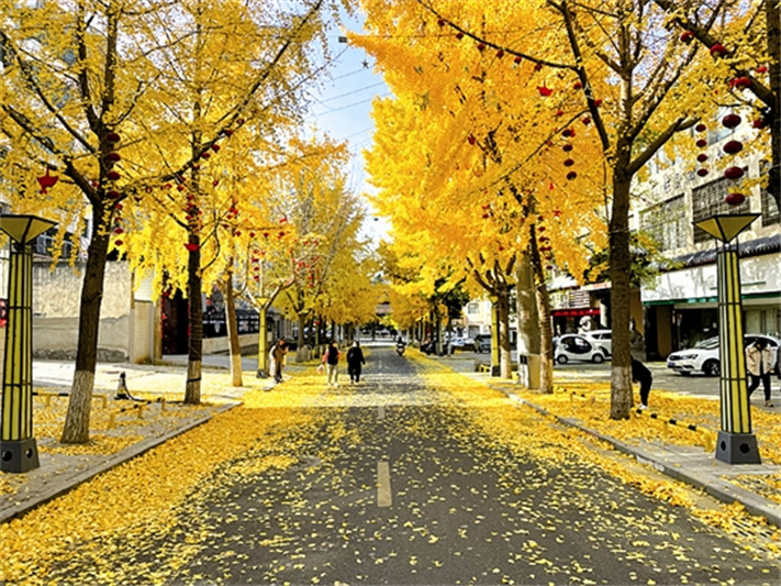 11月26日,走在灵宝市工业路上,银杏叶已经变得金黄,飘落满地。这是一条种满银杏树的路,金黄色的银杏叶为寒冷的天气增添了温暖的氛围,吸引了市民游客纷纷前来拍照打卡,成为远近闻名的“网红街”。 三门峡日报记者 许爱珍 摄