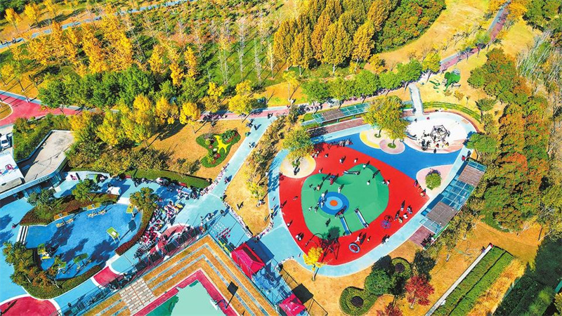 郑州高铁公园风景林带美丽的冬季景观引人入胜(12月1日摄)。高铁公园位于郑东新区龙湖与龙子湖板块的中轴,面积约5000亩,是郑东新区生态环廊的重要组成部分,在铁路沿线打造出一条四季风景林带。大河网-河南日报 记者 聂冬晗 摄