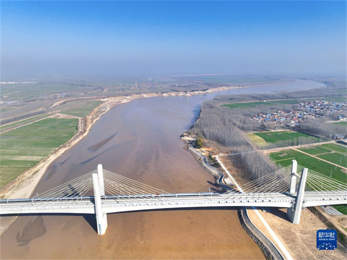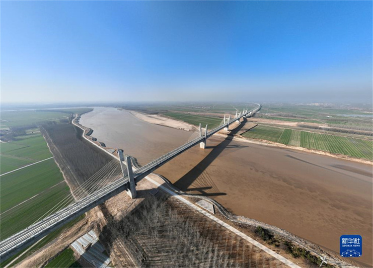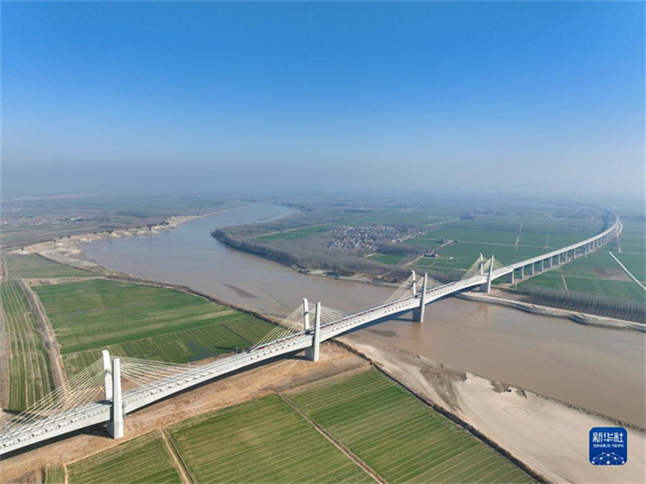 12月8日拍摄的济郑高铁长清黄河铁路特大桥(无人机照片)。12月8日,济郑高铁全线贯通运营。济郑高铁是国家“八纵八横”高铁网的重要连接线,是山东省“八纵六横”高铁网的西向出省通道,也是河南“米”字形高铁网的最后一“笔”。项目通车后,鲁豫两省实现高铁直通,郑州东站至济南西站间最快1小时43分钟可达。新华社记者 邢广利 摄