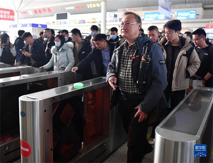 12月8日,乘坐济郑高铁郑州东站首发G4830次列车的旅客在郑州东站检票进站。12月8日,济郑高铁全线贯通运营。济郑高铁是国家“八纵八横”高铁网的重要连接线,是山东省“八纵六横”高铁网的西向出省通道,也是河南“米”字形高铁网的最后一“笔”。项目通车后,鲁豫两省实现高铁直通,郑州东站至济南西站间最快1小时43分钟可达。新华社记者 李嘉南 摄