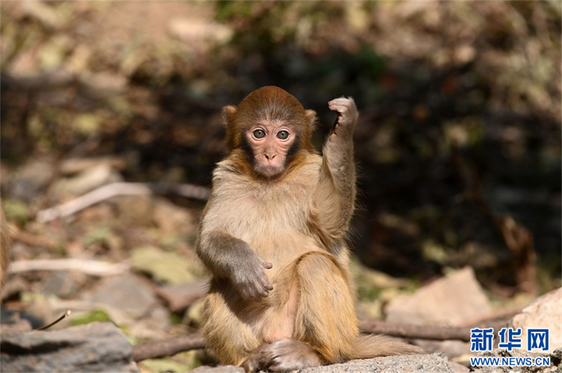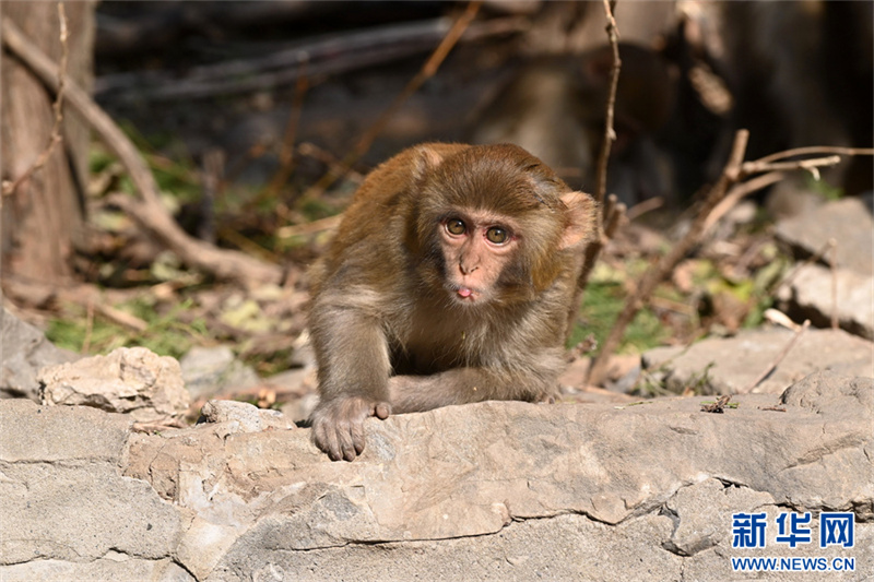 12月9日,河南省沁阳市神农山风景区太行猕猴园,坐在地上的猕猴。