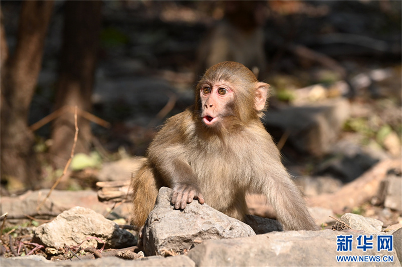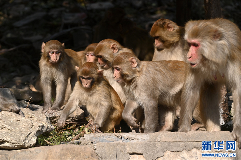 12月9日,河南省沁阳市神农山风景区太行猕猴园的猕猴。
