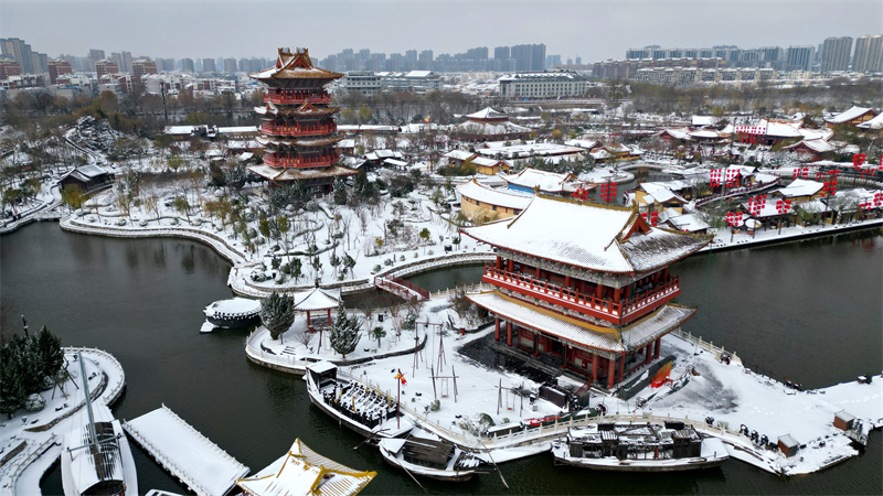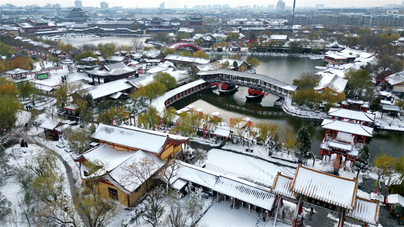 12月11日,经历一场大雪的古都开封,彷佛回到了千年前的宋都汴梁。 开封+记者 袁洋 摄