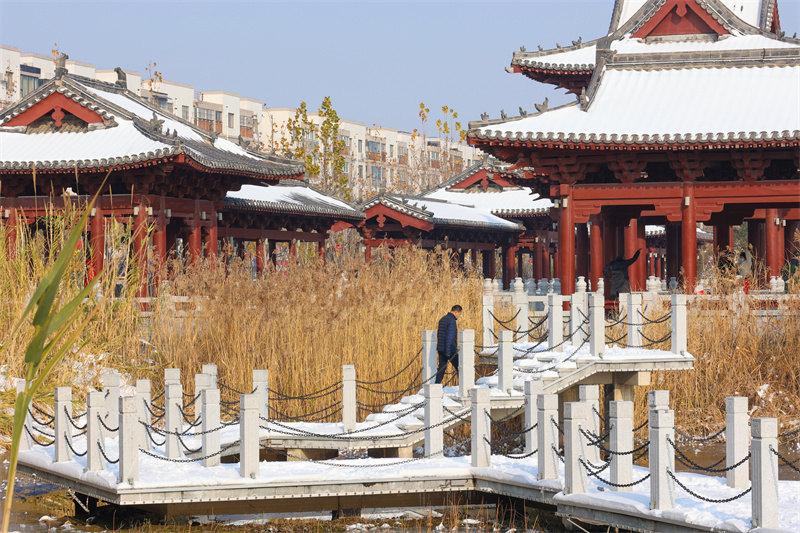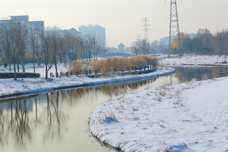 冬日里,开封市西护城河美景如画,吸引不少市民到此休闲赏景。开封+记者 石斐 12月12日摄