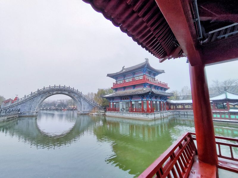 残雪未消,古城开封冬韵十足。景与雪相映成趣,别有一番风情。开封+记者李浩12月13日摄