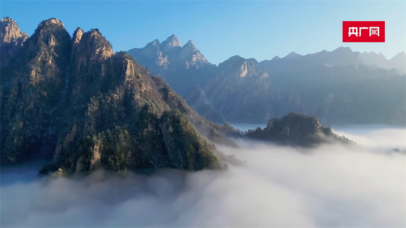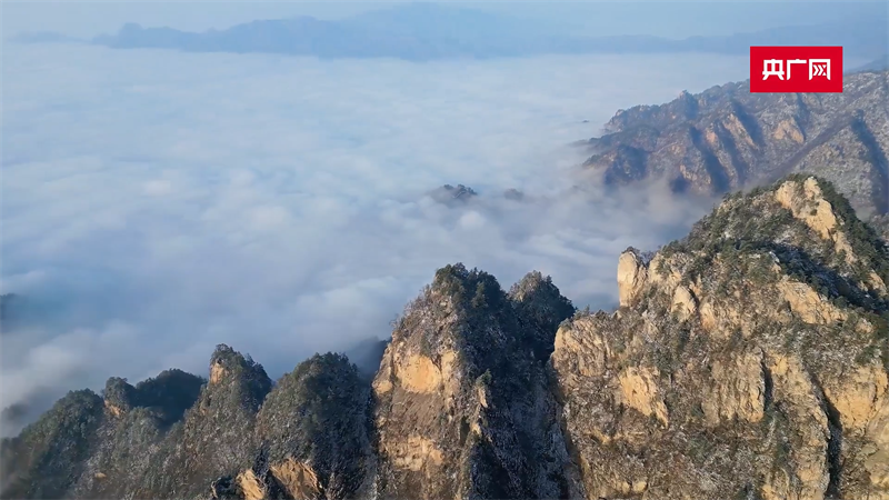 12月12日,南阳老界岭景区迎来雪后云海美景。日出、云海、冰雪、群峰,构成了一幅壮美画卷。从高空俯瞰,群山在汹涌的云海波涛中若隐若现,颇为壮观。