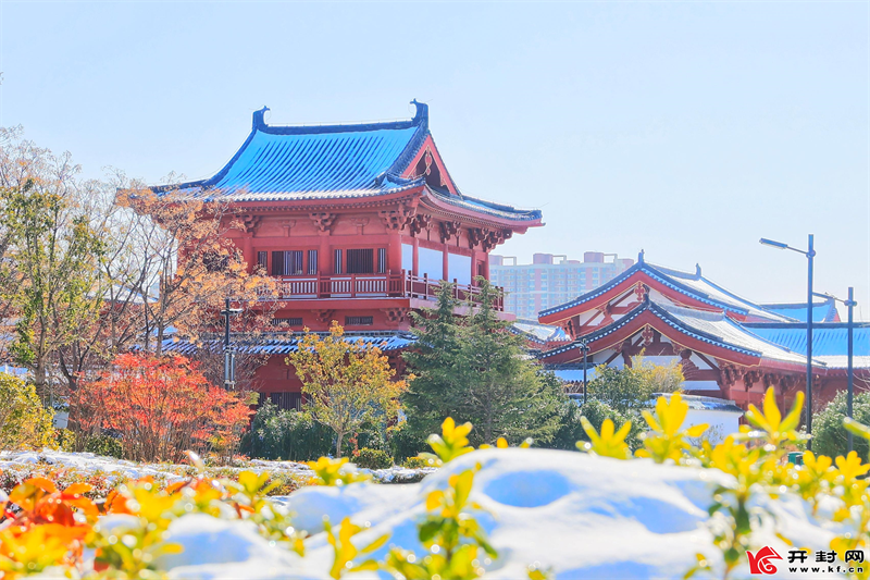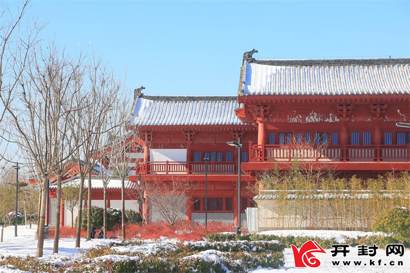 12月16日,雪后的景色美轮美奂,仿古建筑与雪的搭配,更能衬托出古城开封韵味。开封+记者 李浩 摄