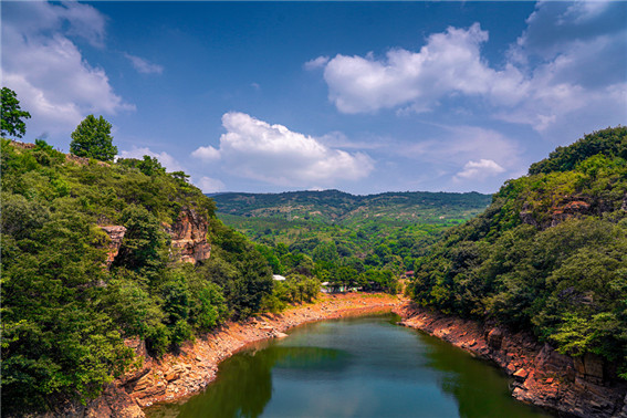 盛夏以来,河南省驻马店市遂平县嵖岈山镇红石崖风景区,峰峦苍翠欲滴,幽谷浓荫覆盖,林间鸟儿鸣叫,一派夏日风采,令人舒心惬意。