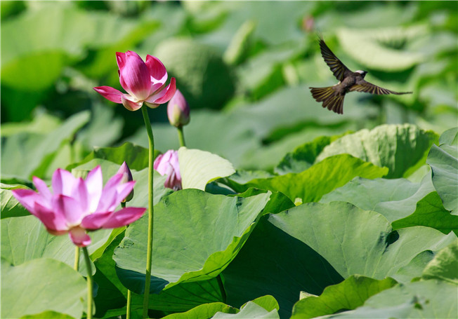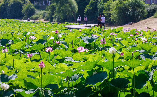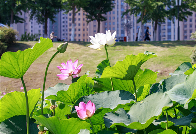 荷花或热情绽放,或含苞待放。 杨光 摄
