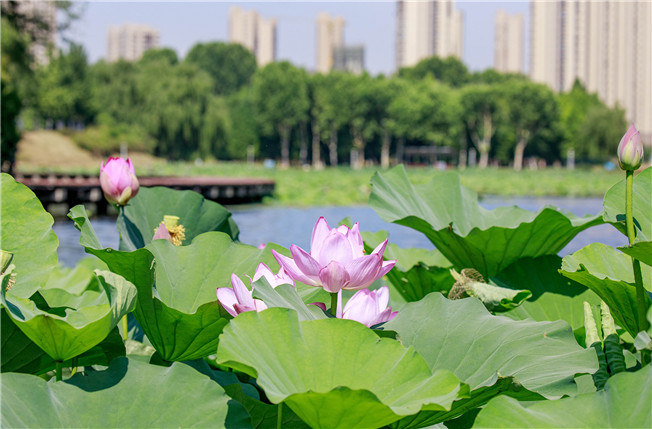 盛夏时节,漯河市沙澧公园远香塘的荷花陆续绽放,荷叶田田,荷花依依,夏天的氛围更浓了。 杨光 摄