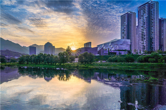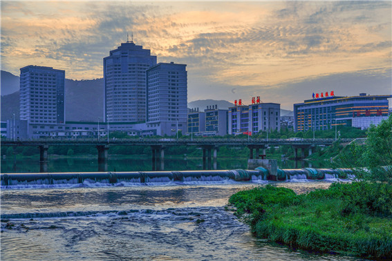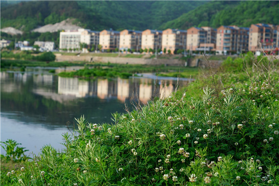仲夏时节,信阳市新县小潢河两岸的湿地公园,鸟语花香,处处生机勃勃。这里绿树成荫、楼台碧水,行走其中,如在画中畅游。