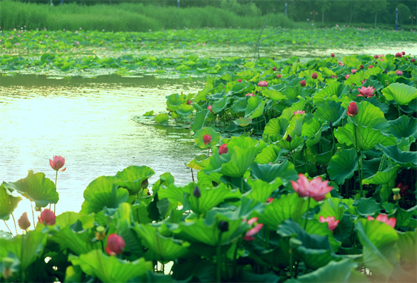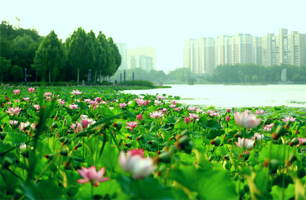 盛夏时节,周口市鹿邑县上清湖公园里,大片的荷花悄然绽放,构成了夏日一道亮丽的风景线。