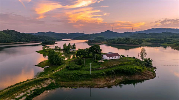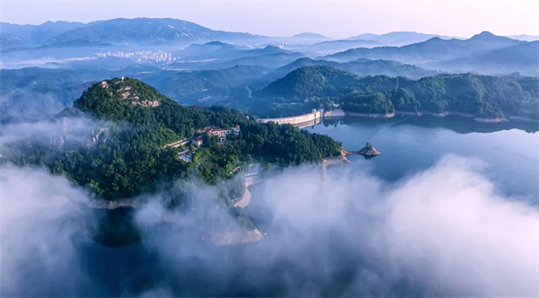 信阳市新县香山湖管理区,湖光山色、森林茂密、空气清新,是盛夏避暑的好去处。
