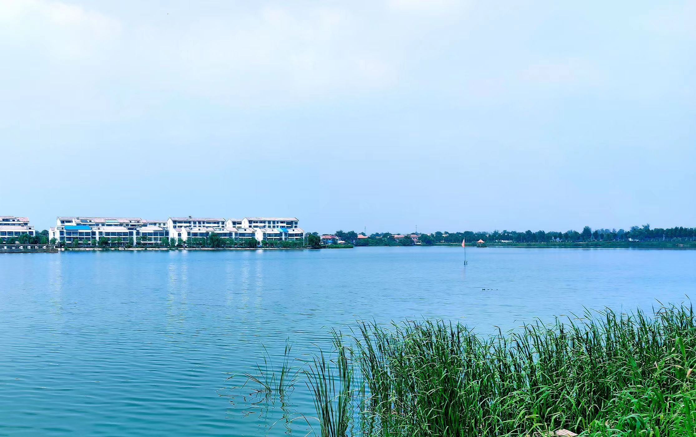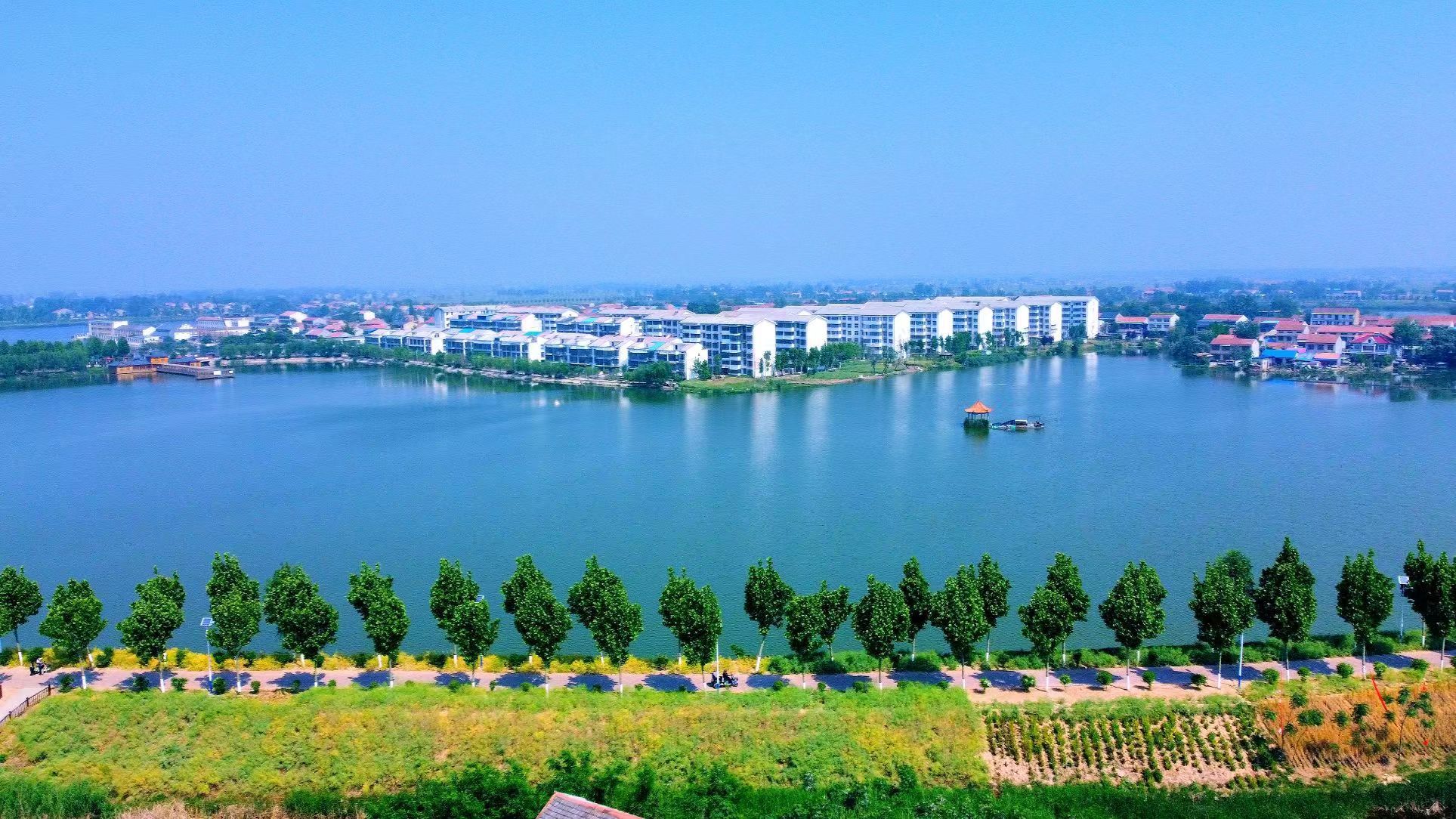 商丘市虞城县利民镇城湖,现有2800亩水域、5公里护城大堤。盛夏时节,利民镇城湖碧波荡漾,湖堤上绿意葱葱,宛若一幅美丽的生态画卷。
