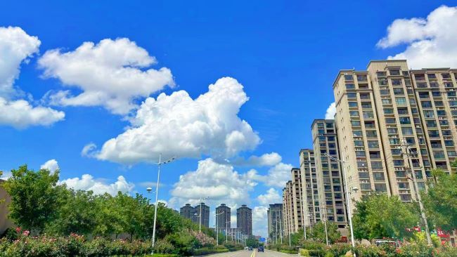 盛夏时节,周口市西华县雨后初晴,蓝天白云美如画。