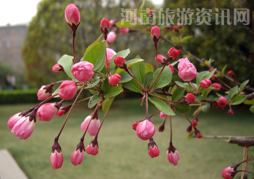 含苞待放。碧沙岗首届海棠花节上粉嘟嘟的红海棠花。
