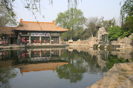 凤湖湖面约10000平方米,湖岸逶迤曲折,垂柳依依,湖水波光粼粼。曲桥起伏贯穿两岸。凤湖北岸,垒石成山,绝壁兀起,名曰“涧溪”。峰顶清泉飞瀑,恰似"高山阔水",气度非凡。西岸筑一小型庭院式仿古建筑---“靓思园”,与北岸瀑布形成“靓思飞瀑”的壮丽景观。