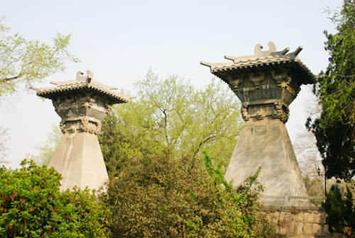 “洛阳宫阙郁嵯峨,千古荣华逐逝波。”周文化区入口,耸立一对峰腰型建筑——阕。阕基础以上3.9*3.3米,檐口5.2*4.4米,高8.25米,用420立方米青石砌成。檐下有逼真的斗拱、椽、枋、檐上有脊、吻,四周有绵刻仿古书。具有浓厚的秦汉风格,古朴典雅,雄伟挺拔,体现了洛阳史上“丹阕映彀”是王城八景之一。